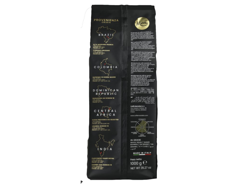 Tato káva má vynikající rovnováhu 90% kávových zrn Arabika a 10% podílu kávových zrn Robusta. Chuť je plná a vyvážená s velmi jemnými ovocnými tóny. Generace Martellovcou pracovali jako baristé a pražáci pro významné italské kávovy domy, aby si v roce 1940 založili vlastní pražírnu Martella. Od první chvíle je hlavním ukazatelem výsledné kávy kvalita použitého zrna a dokonalost jeho pražení. Nejkvalitnější kávy Arabica pocházejí z Guatemaly, Kolumbie a Santa Dominga doplňují jejich nejlepší kávy Robusta z Jižní Brazílie a Střední Ameriky. Pražení kávy je tradičně pomalé na plynu, v malých dávkách. Nikdy se nepraží více než 60kg na jednu várku kávy. Tento způsob pražení je velmi nákladný, ale výsledkem je pak mnohem kvalitnější káva s vynikajícími vlastnostmi a specifickou vůní.